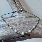 Kette Spinell, Süsswasserperlen, Bambuskoralle und vergoldetes Sterlingsilber