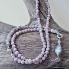 lange Kette polierter rosa Calcit und Sterlingsilber