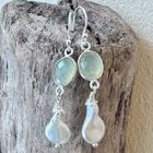 Ohrhänger facettierter Prehnit, Sterlingsilber und Süsswasserperlen