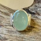 Ring mattiertes Sterlingsilber und polierter Aqua Chalcedon