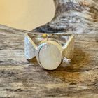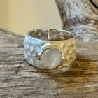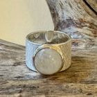 Ring mattiertes Sterlingsilber und polierter Regenbogen-Mondstein