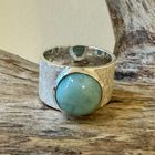 Ring mattiertes Sterlingsilber und grosser Aqua Chalcedon