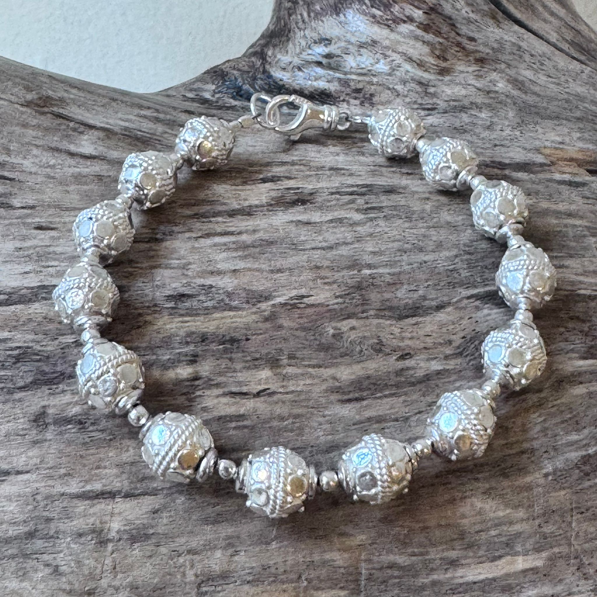 Dieses schöne Armband haben wir aus dekorativen Elementen aus Sterlingsilber (7x6mm) kreiert. Das Armband hat eine Länge von 18,5cm.