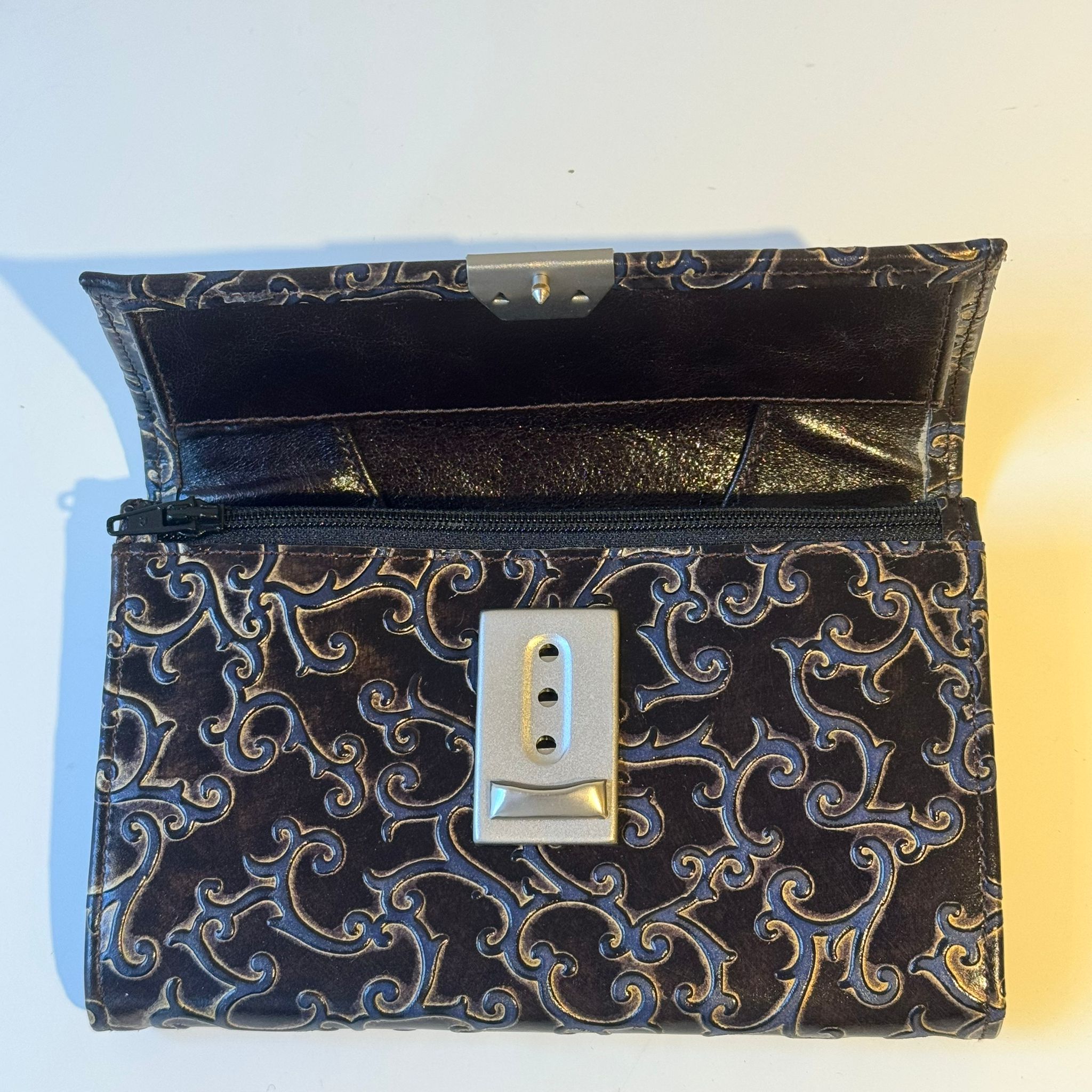 Verschluss: 3fach variables Leiterschloss - Innenaufteilung: 3 Ziehharmonikafächer, ein grosses Fach für Hartgeld (wie bei einem Serviceportemonnaie), 16 Kartenfächer, 2 Steckfächer für Ausweise, 1 Sicherheitsfach mit Reisverschluss.