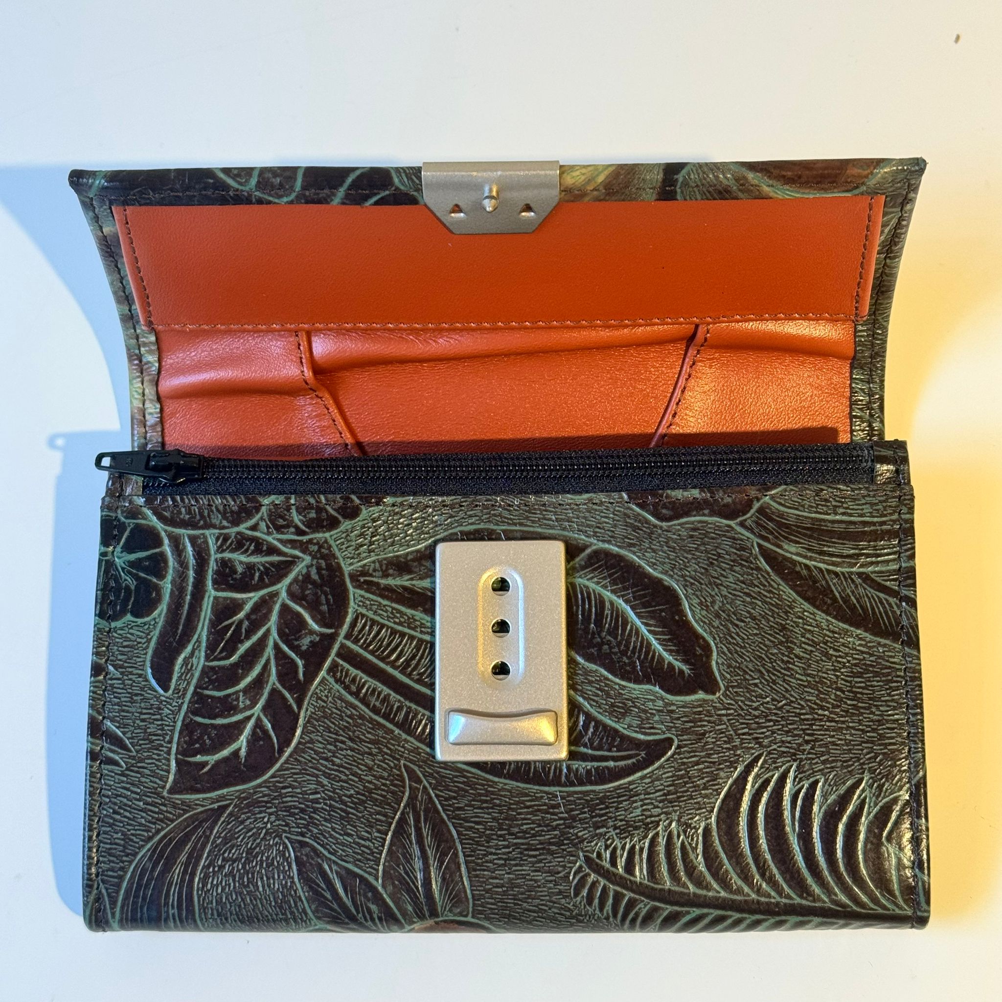 Verschluss: 3fach variables Leiterschloss - Innenaufteilung: 3 Ziehharmonikafächer, ein grosses Fach für Hartgeld (wie bei einem Serviceportemonnaie), 16 Kartenfächer, 2 Steckfächer für Ausweise, 1 Sicherheitsfach mit Reisverschluss.
