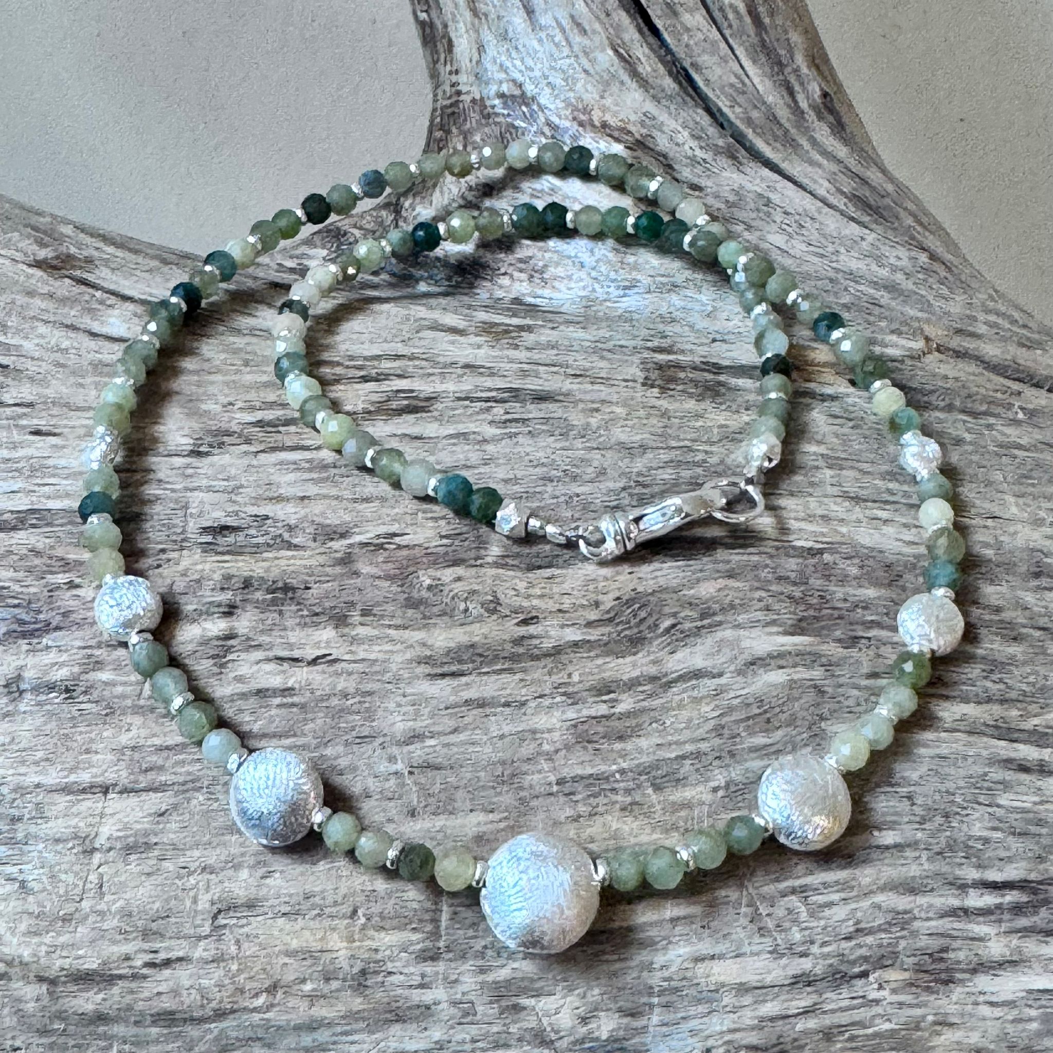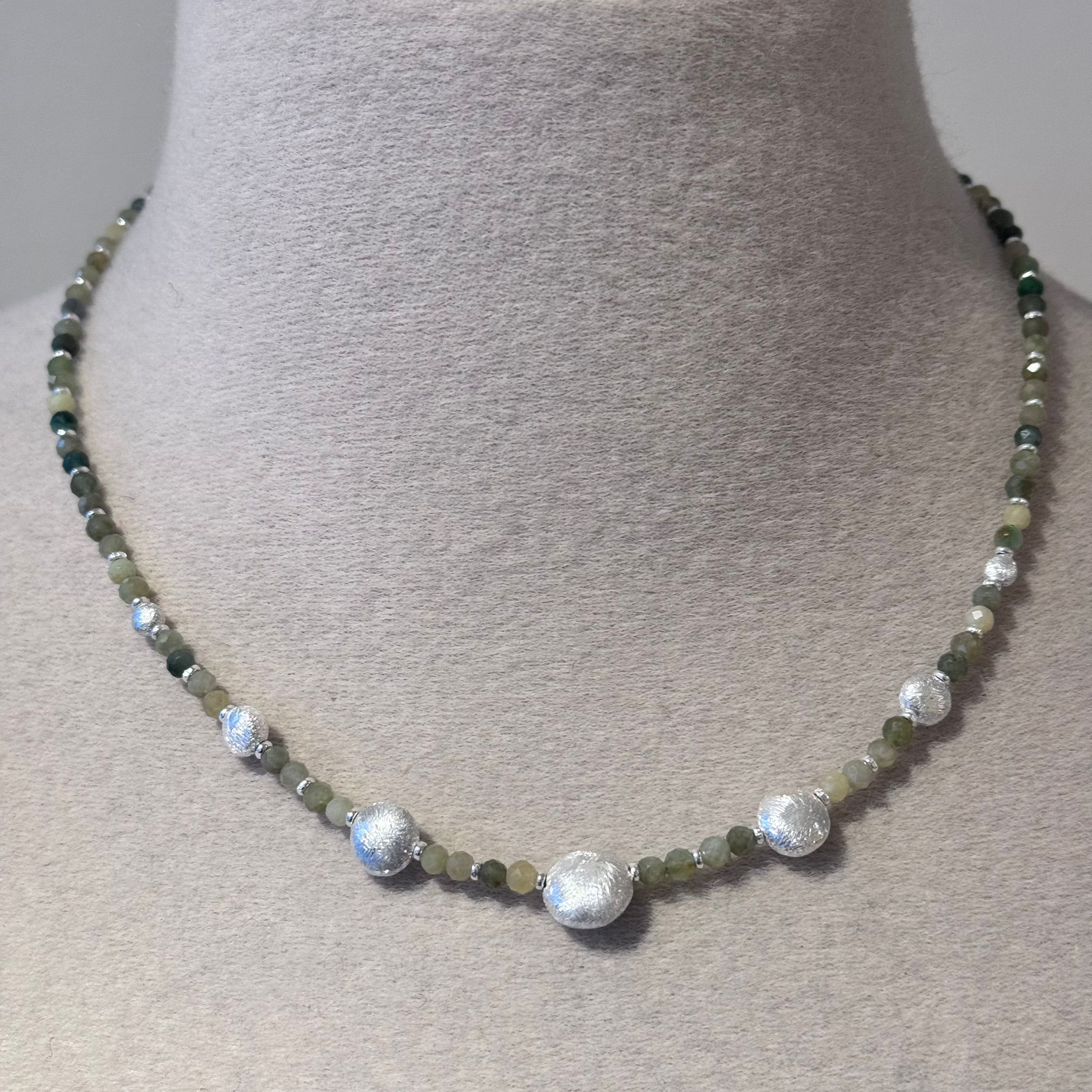 Kette facettierte Burma Jade und mattiertes Sterlingsiber
