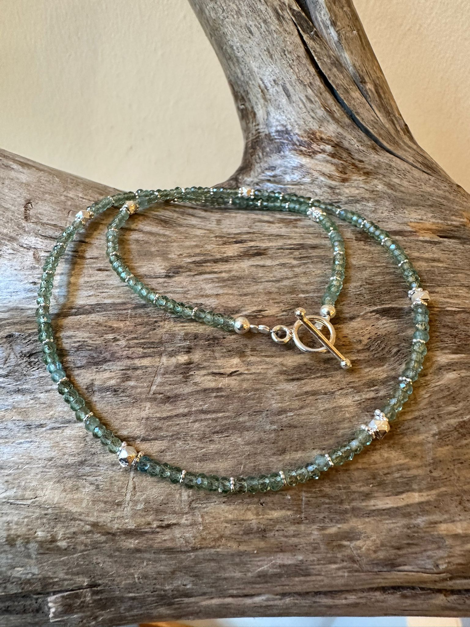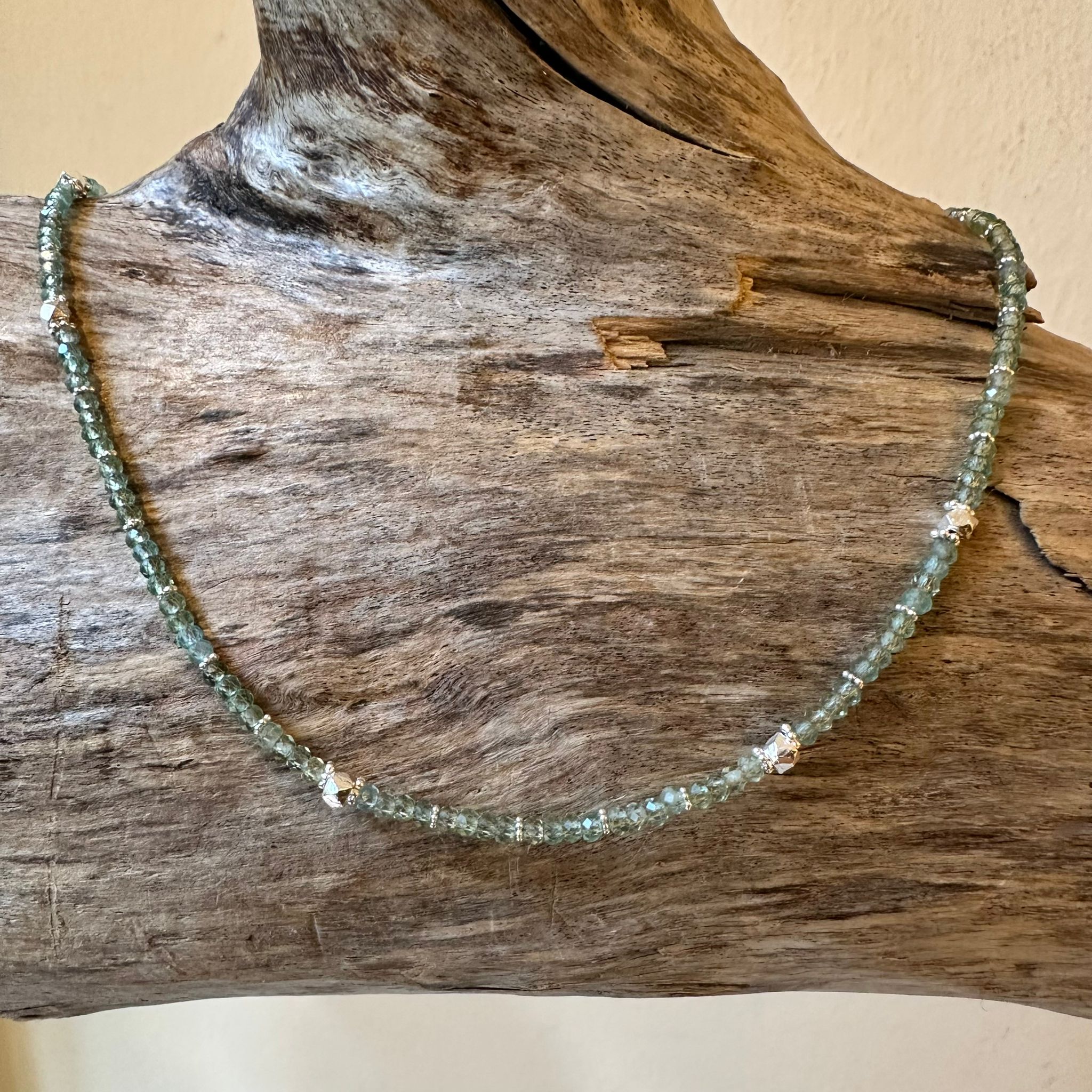 Kette facettierter grüner Apatit und Sterlingsilber