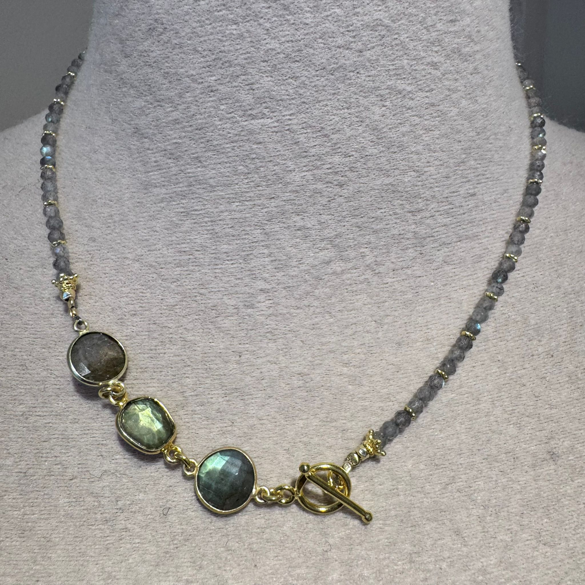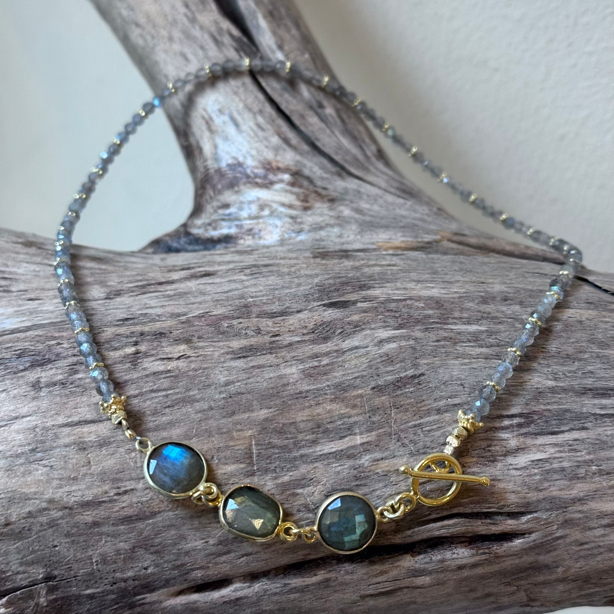 Kette facettierter Labradorit und vergoldetes Sterlingsilber