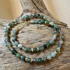 Kette facettierter Moosachat und vergoldetes Sterlingsilber