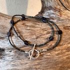 Diese schöne Kette haben wir aus facettiertem dunklem Pyrit (2mm), facettiertem Iolith (7x5mm) und einem dekorativen Ring-Stab-Verschluss aus mattiertem Sterlingsilber kreiert. Die Kette hat eine Länge von 43cm.