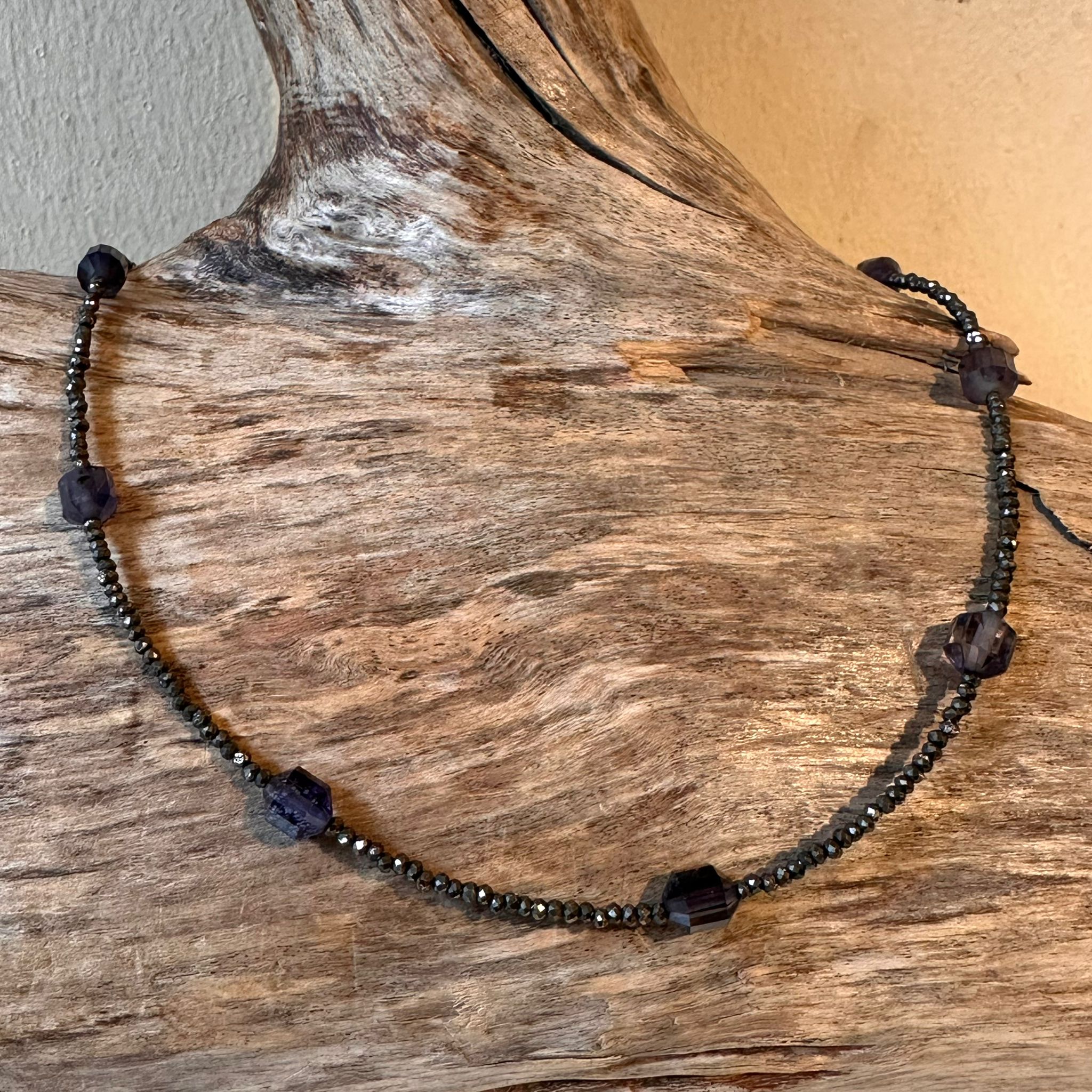 Kette facettierter Pyrit, Iolith und Sterlingsilber