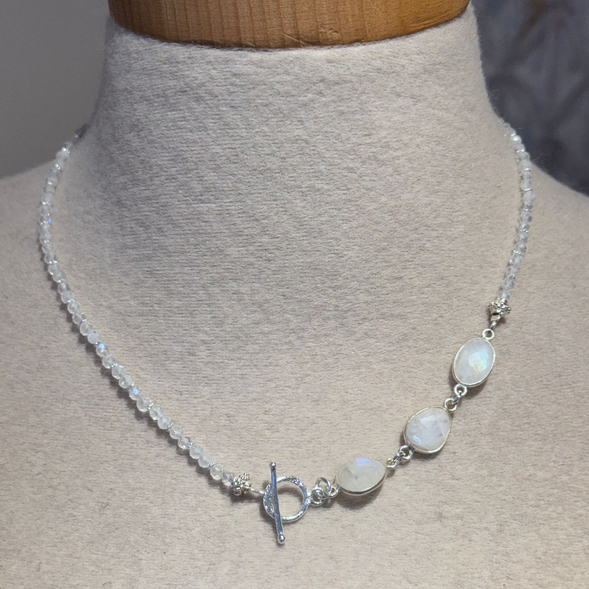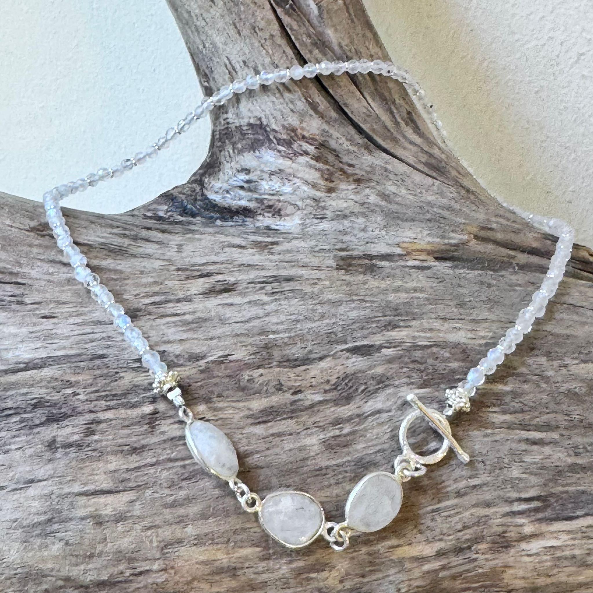 Kette facettierter Regenbogen-Mondstein und Sterlingsilber