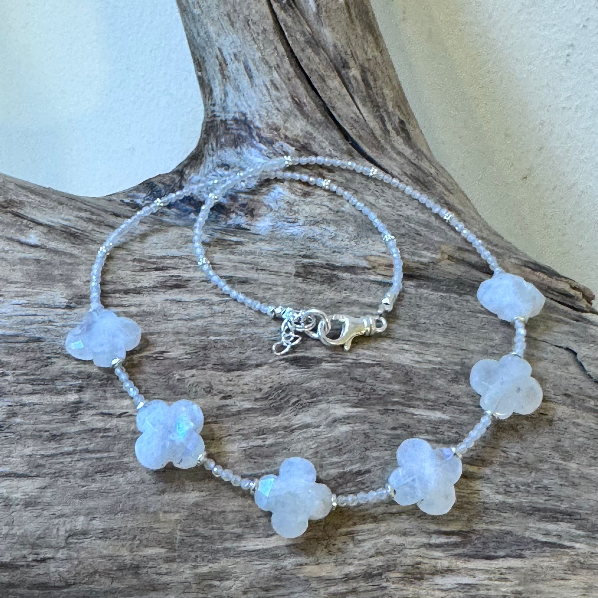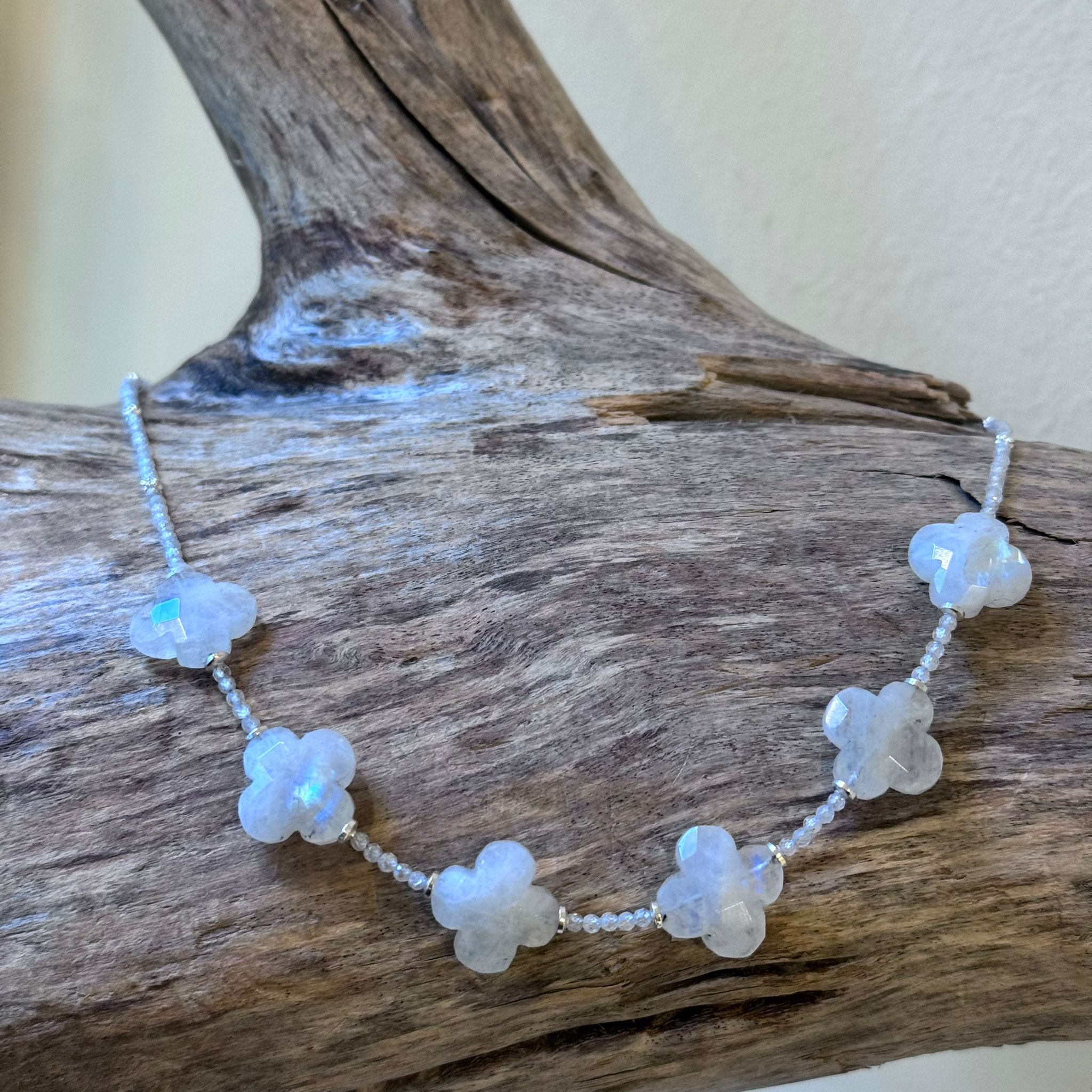 Kette facettierter Regenbogen-Mondstein, Zirkon und Sterlingsilber