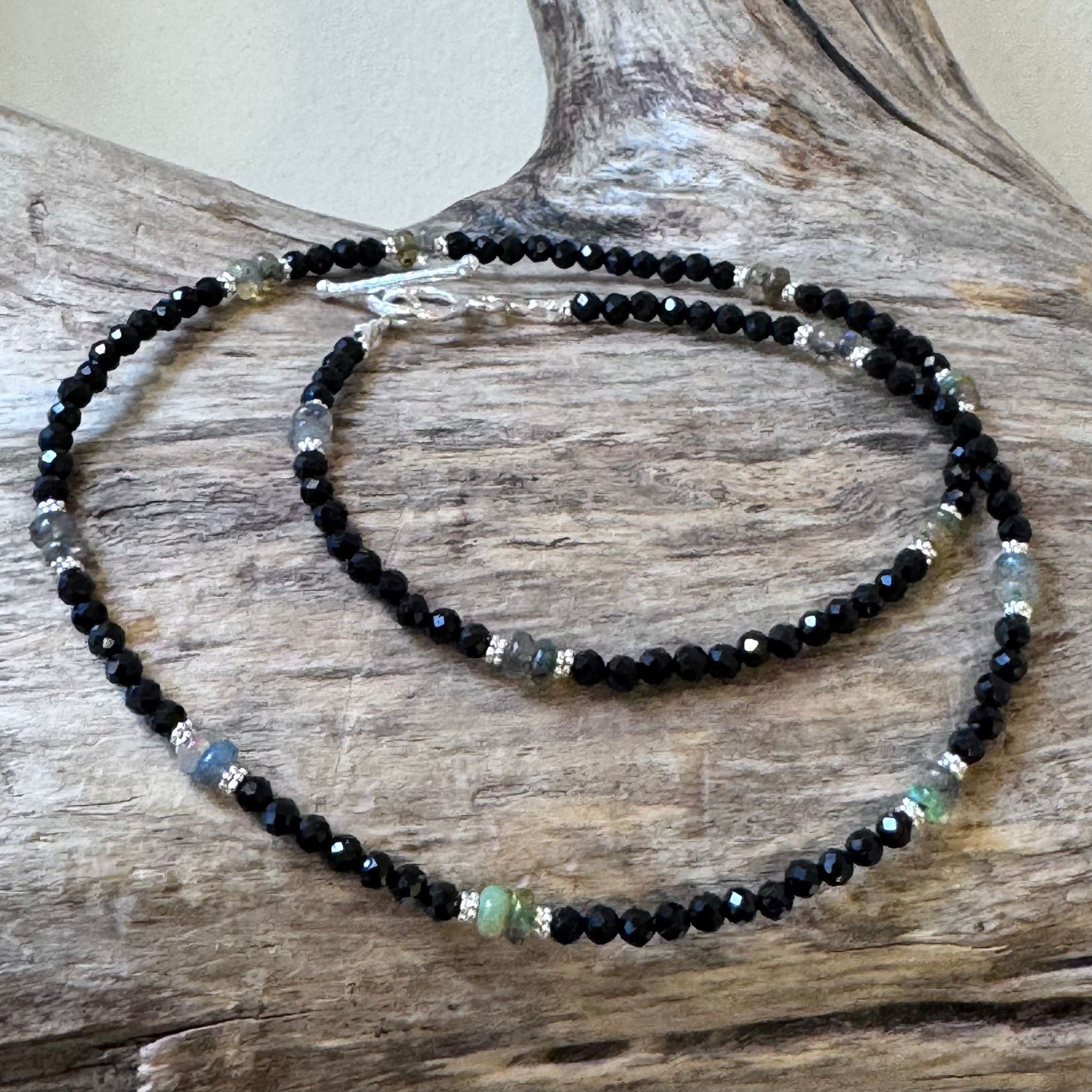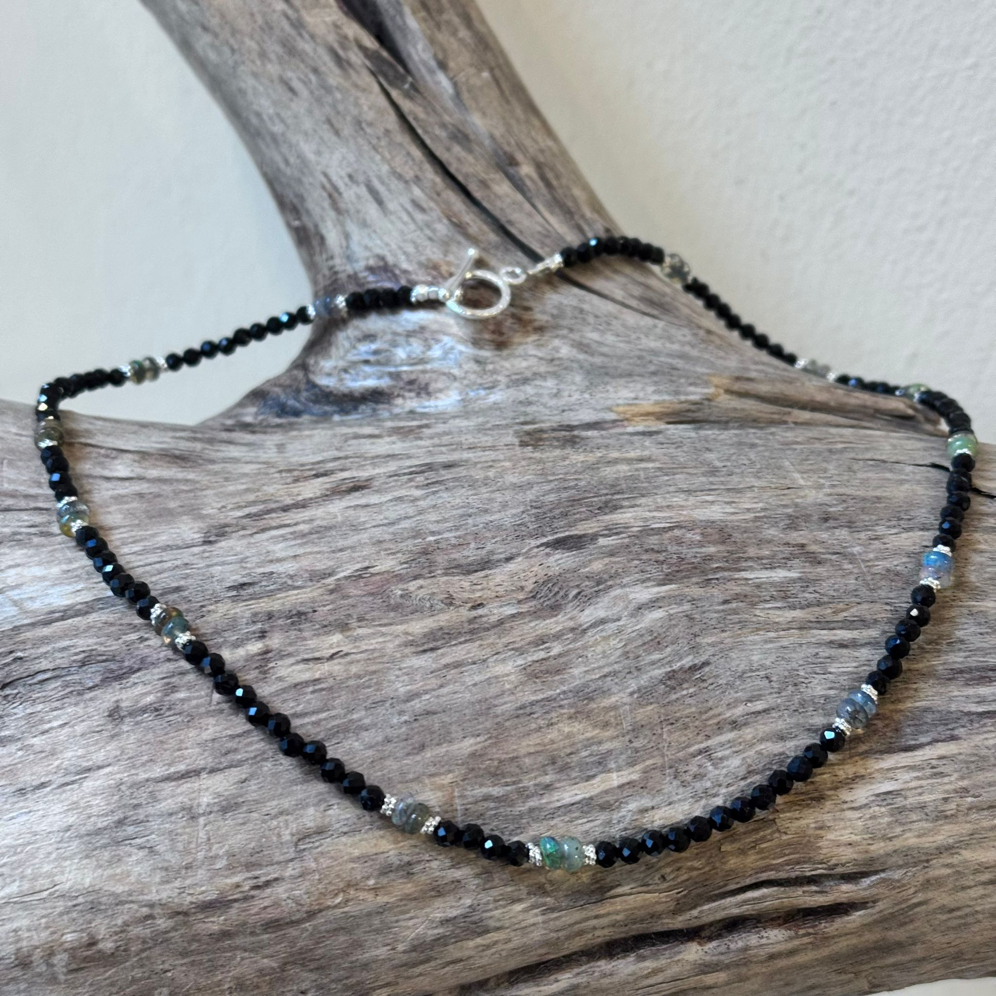 Kette facettierter Spinell, Edelopal und Sterlingsilber