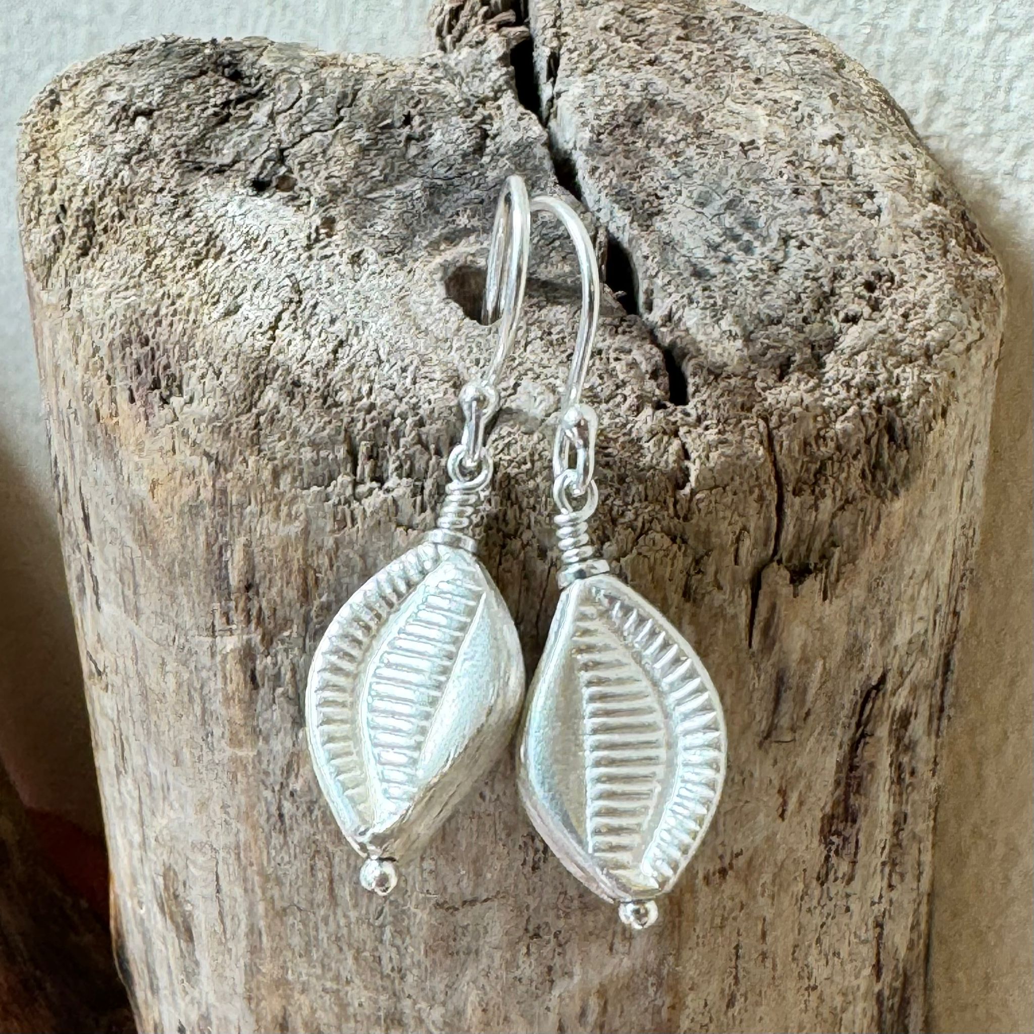 Diese schönen Ohrhänger haben wir aus Elementen aus mattiertem Sterlingsilber (18x11mm) kreiert. Die Ohrhänger haben eine Länge von 3,8cm.