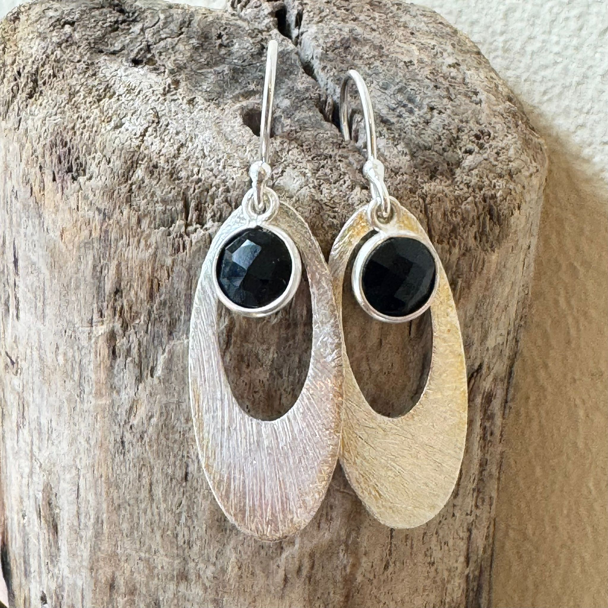Ohrhänger mattiertes Sterlingsilber und facettierter Onyx