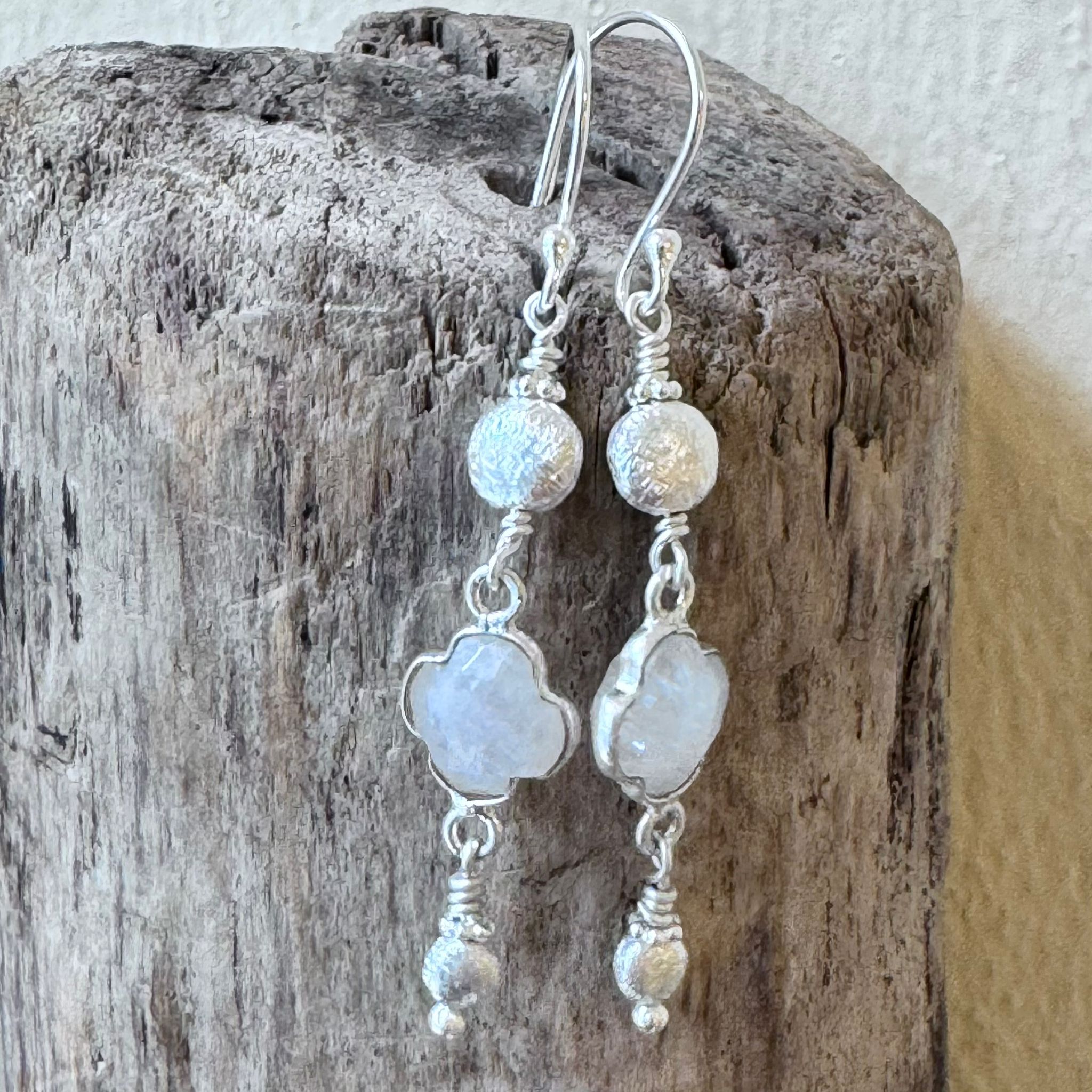 Ohrhänger mattiertes Sterlingsilber und facettierter Regenbogen-Mondstein