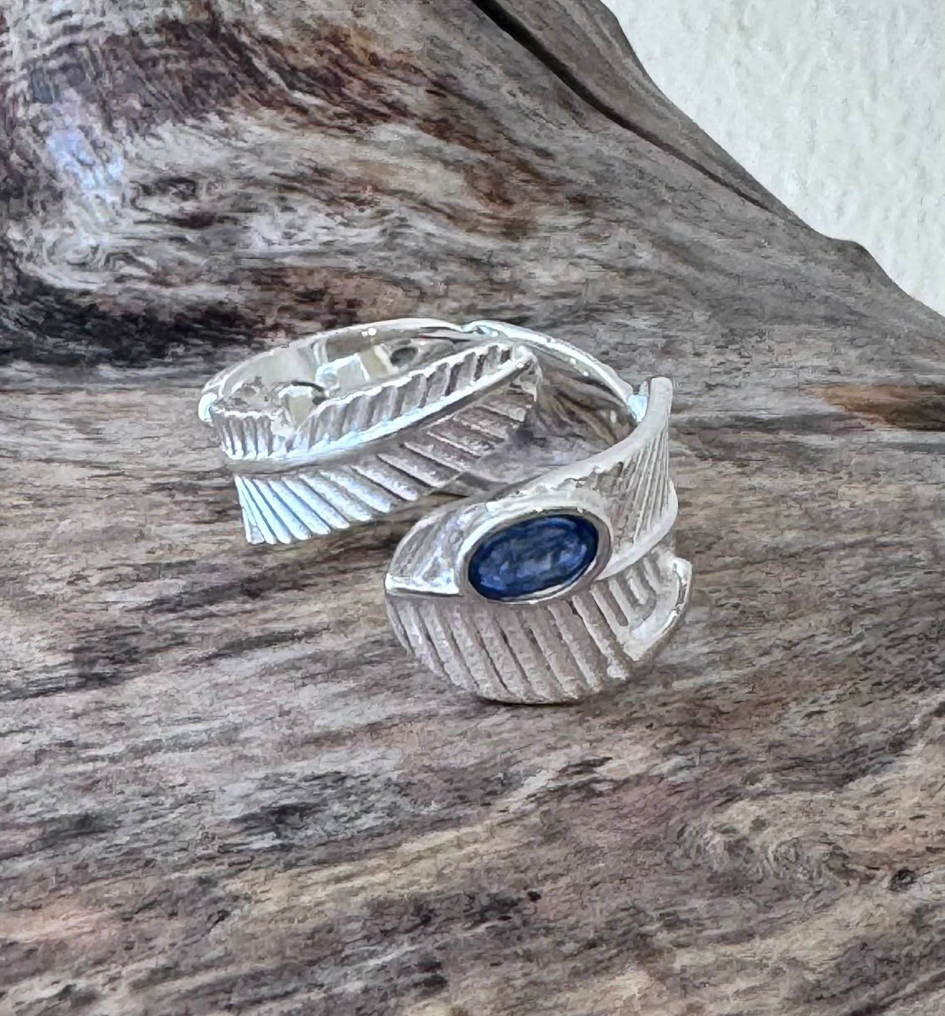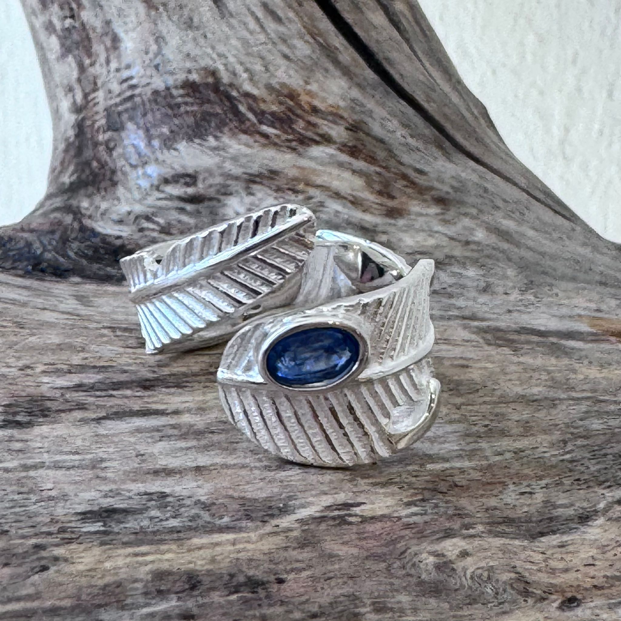 Ring "Feder" Sterlingsilber und facettierter Kyanit